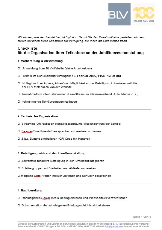 Vor 100 Jahren begann in Freiburg i. Bg. die Geschichte der höheren Beruflichen Bildung an Beruflichen Schulen. Heute prägen die Beruflichen Gymnasien und Berufsoberschulen landesweit die Bildungslandschaft – modern, praxisorientiert und mit direktem Weg zur Hochschulreife. Lassen Sie uns das einer breiten Öffentlichkeit und vielen jungen Menschen einmal mehr ins Bewusstsein bringen.
