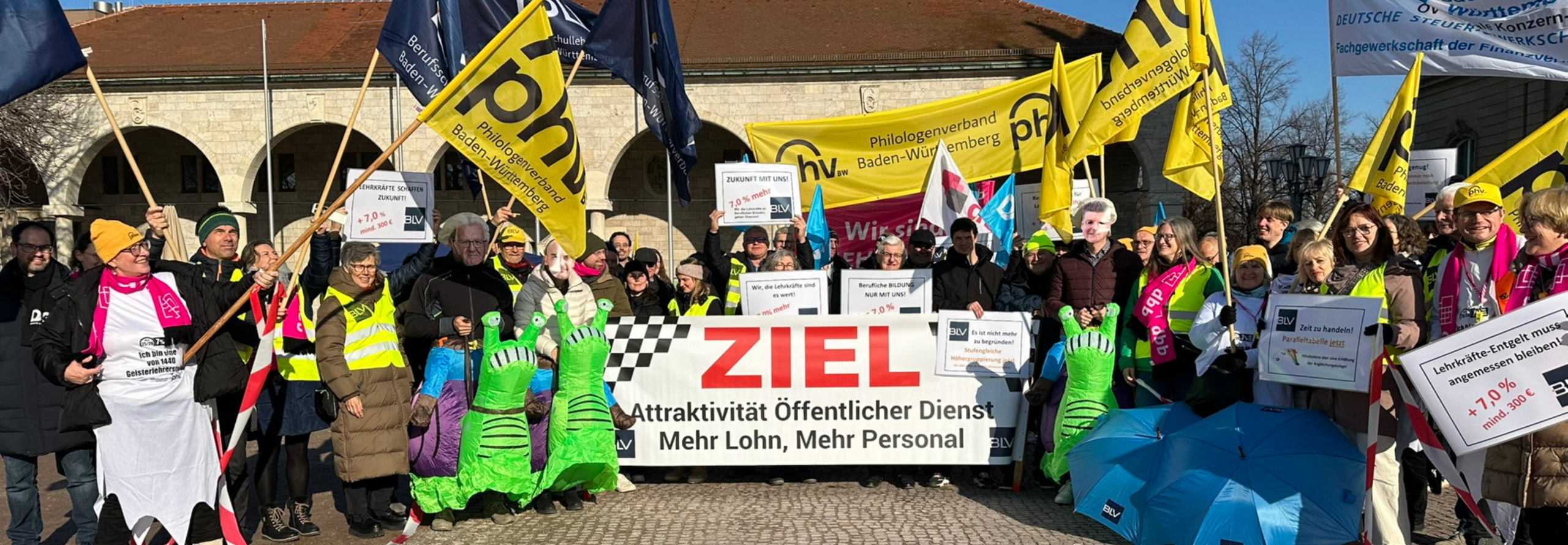 Der Berufsschullehrerverband (BLV) und der Philologenverband Baden-Württemberg (PhV) hatten zu der Aktion aufgerufen, nachdem auch die zweite Runde der Tarifverhandlungen für den öffentlichen Dienst der Länder (TV-L 2025/2026) ohne abschlussfähiges Angebot der Arbeitgeberseite (TdL) geblieben war.